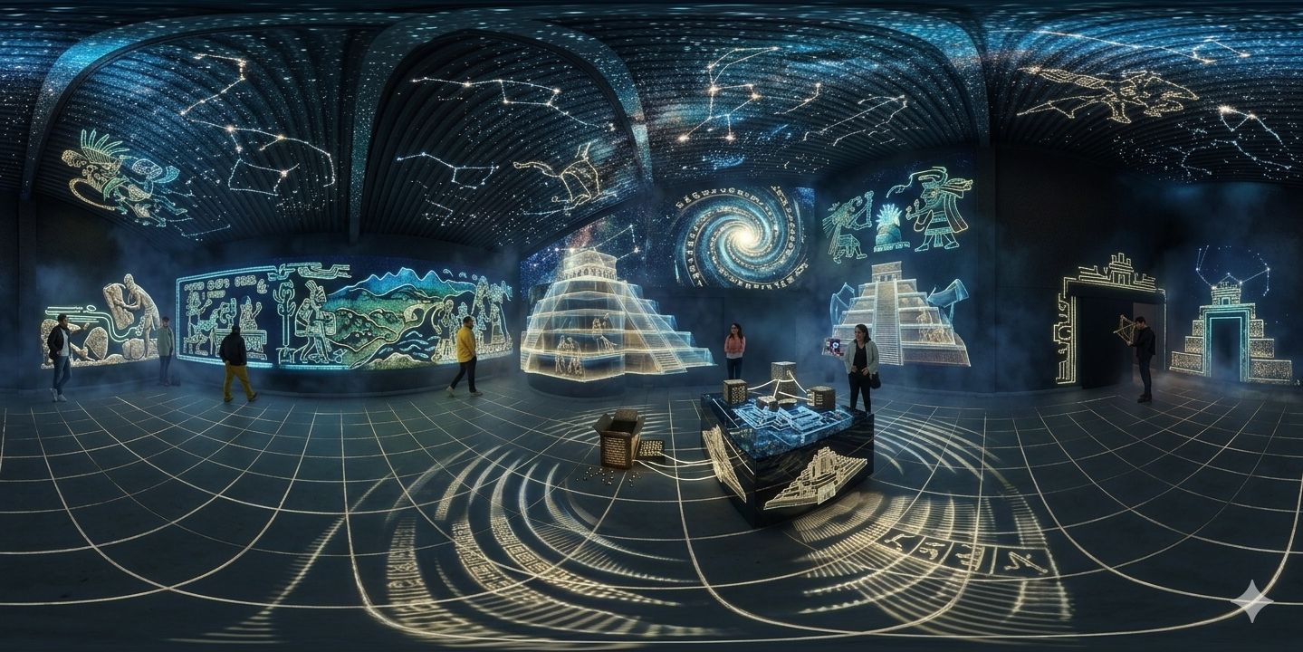 La Sala Guadalupe Mastache albergará una intervención de cuatro capas narrativas que fusiona escaneados 3D y LiDAR del sitio con animación procedural, proyección 360°, interactividad kinética y realidad virtual.